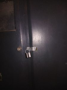 — Установка навесного замка на двери электрощитовой (Оптический пр-д., 16, 12 эт.).